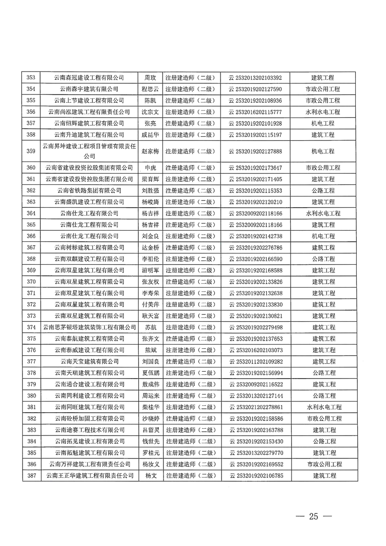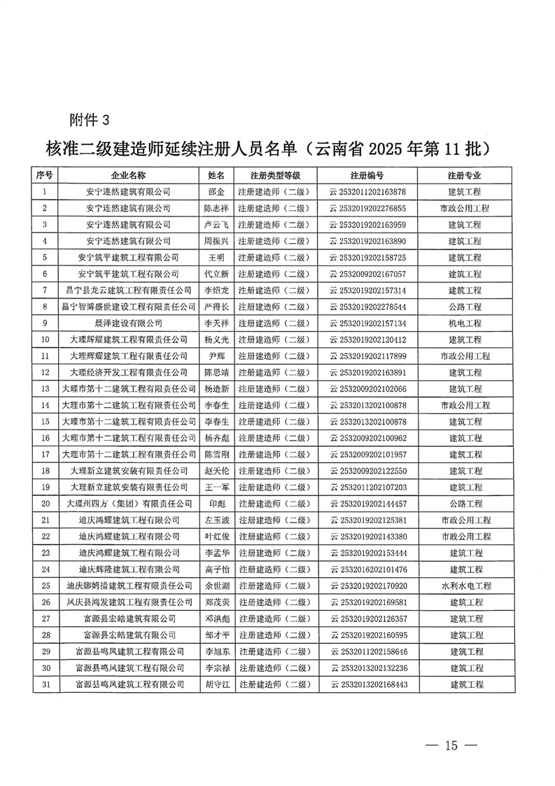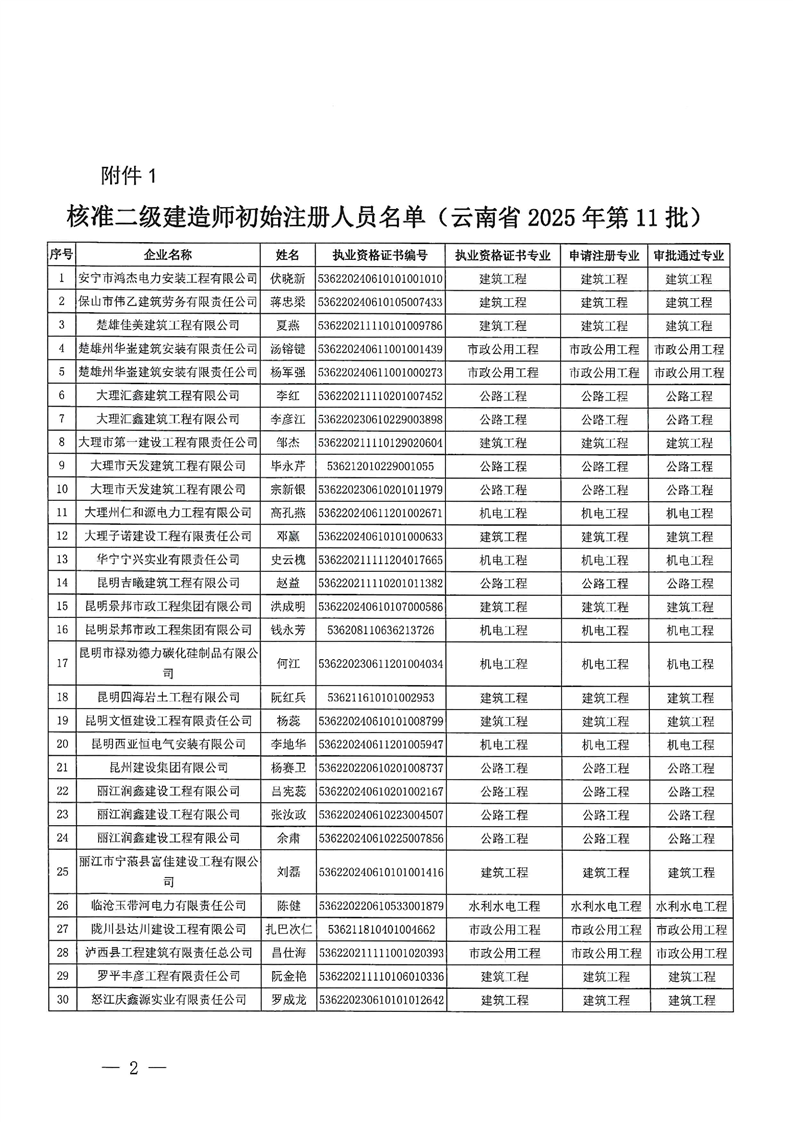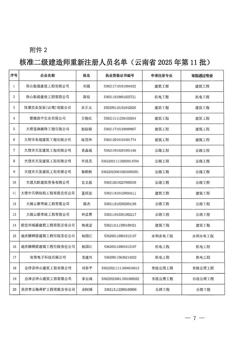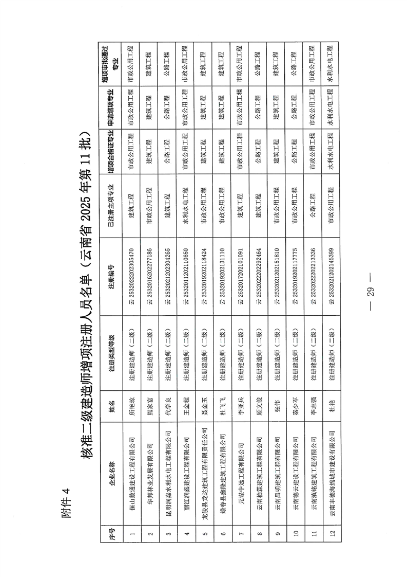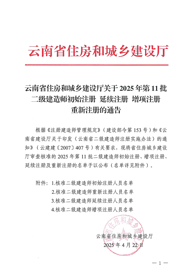 云南省住建厅关于2025年第11批二级建造师初始注册延续注册增项注重新注册的通告