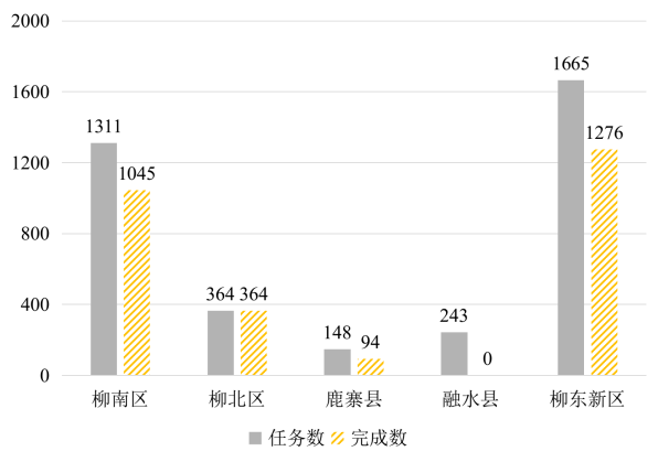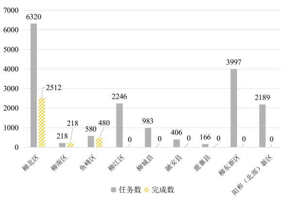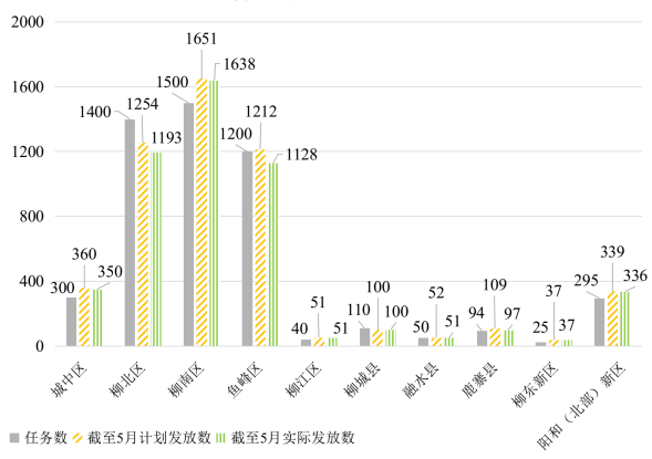 2022年,自治区下达柳州市保障性租赁住房建设目标任务16189套(间)。截至2022年12月31日,在建项目17个,任务数11343套(间)。截至2023年6月25日,已有11个项目复工,共计7614套(间)。其中,在建项目建设进度较快的县(区)有:柳北区、鱼峰区、阳和工业新区(北部生态新区)、柳城县、鹿寨县、三江县,尚未复工的县(区)有:柳东新区、柳南区。