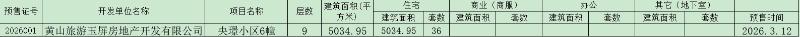 黄山市商品房预售许可公告-央璟小区6幢(2026001)